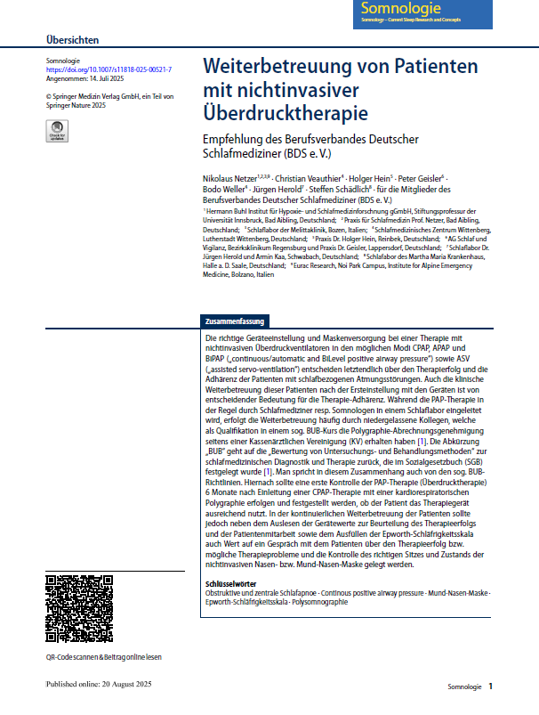 Im folgendem Artikel beschreibt der BDS die korrekte Weiterbehandlung von Patienten mit nichtinvasiver Überdruckventilation.“